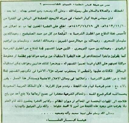 بيان هيئة كبار العلماء عن أعضاء لجنة الحقوق الشرعية. التاريخ يعيد نفسه. #سليمان_الرشودي #عبدالله_الحامد #محاكمة_حسم