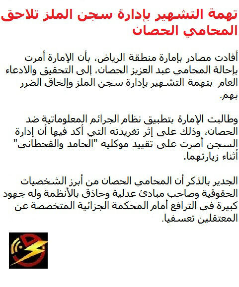 تهمة التشهير بإدارة سجن الملز تلاحق المحامي الحصان