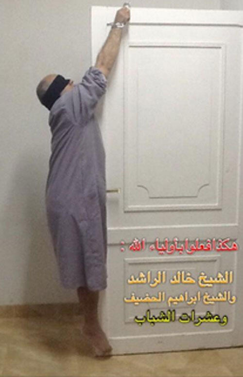 10- هنا صورة لطريقة التعليق أثناء التحقيق مع المعتقلين في ( مملكة الانسانية ) حيث تطبيق الشريعه !!