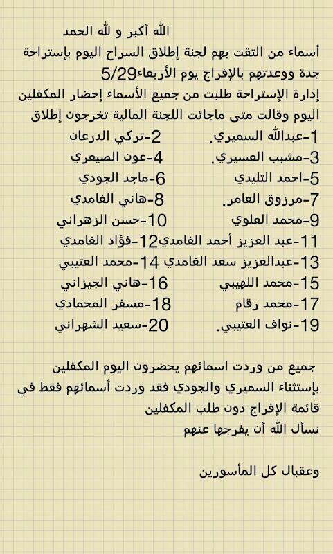 ونرجوا من عامة المسلمين مناصرته والوقوف معه فأولادة وزوجاته مشتتون بعد سجنة وبعض الأولاد لم يروا بعض لفقد والدهم وظروفهم المادية صعبه جدا بعد سجن والدهم لانه العائل الوحيد لهم.